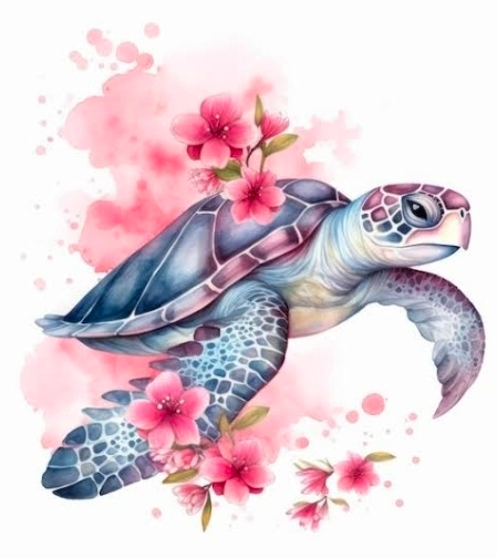 Pink petals drifted down like gentle snow. Each one glowed faintly as it kissed the water's surface. They floated like tiny boats, creating swirling patterns of rose and pearl across the cove. Young turtles giggled as blossoms landed on their noses, while elders let the petals settle on their shells like delicate crowns.